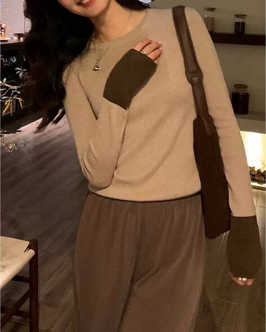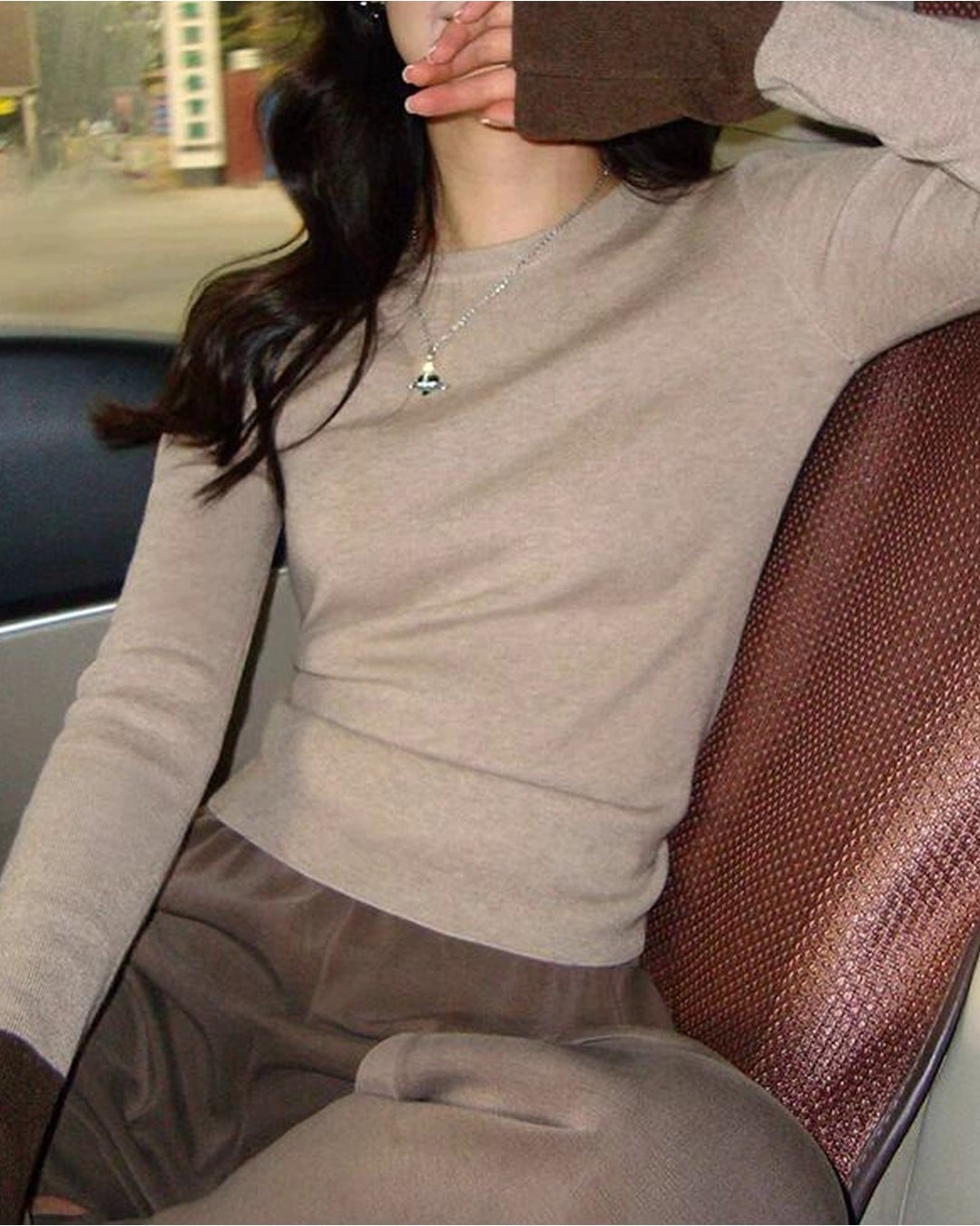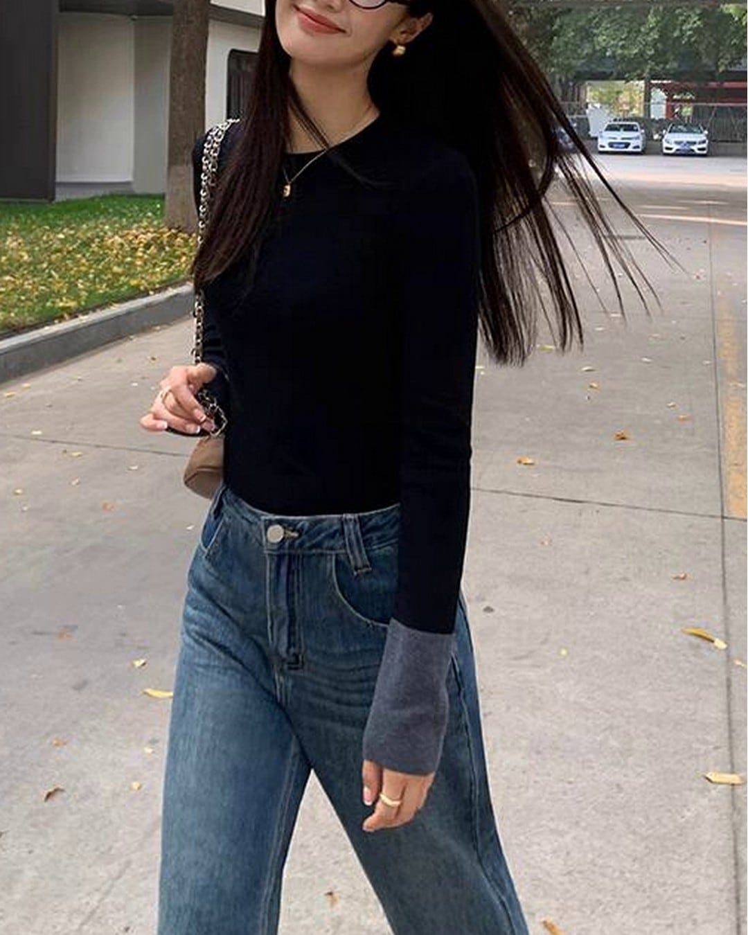 トレンディーなバイカラーのデザインが特徴的。デイリースタイルやお出かけにもぴったりです。リラックスした着心地を提供し、様々なボトムスとコーディネート可能です。