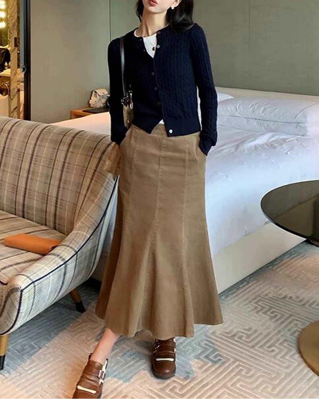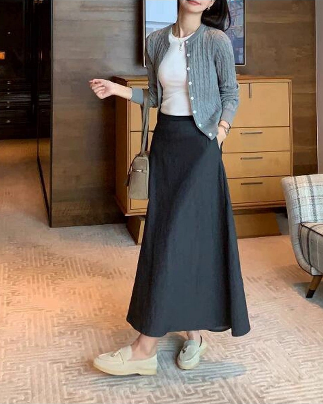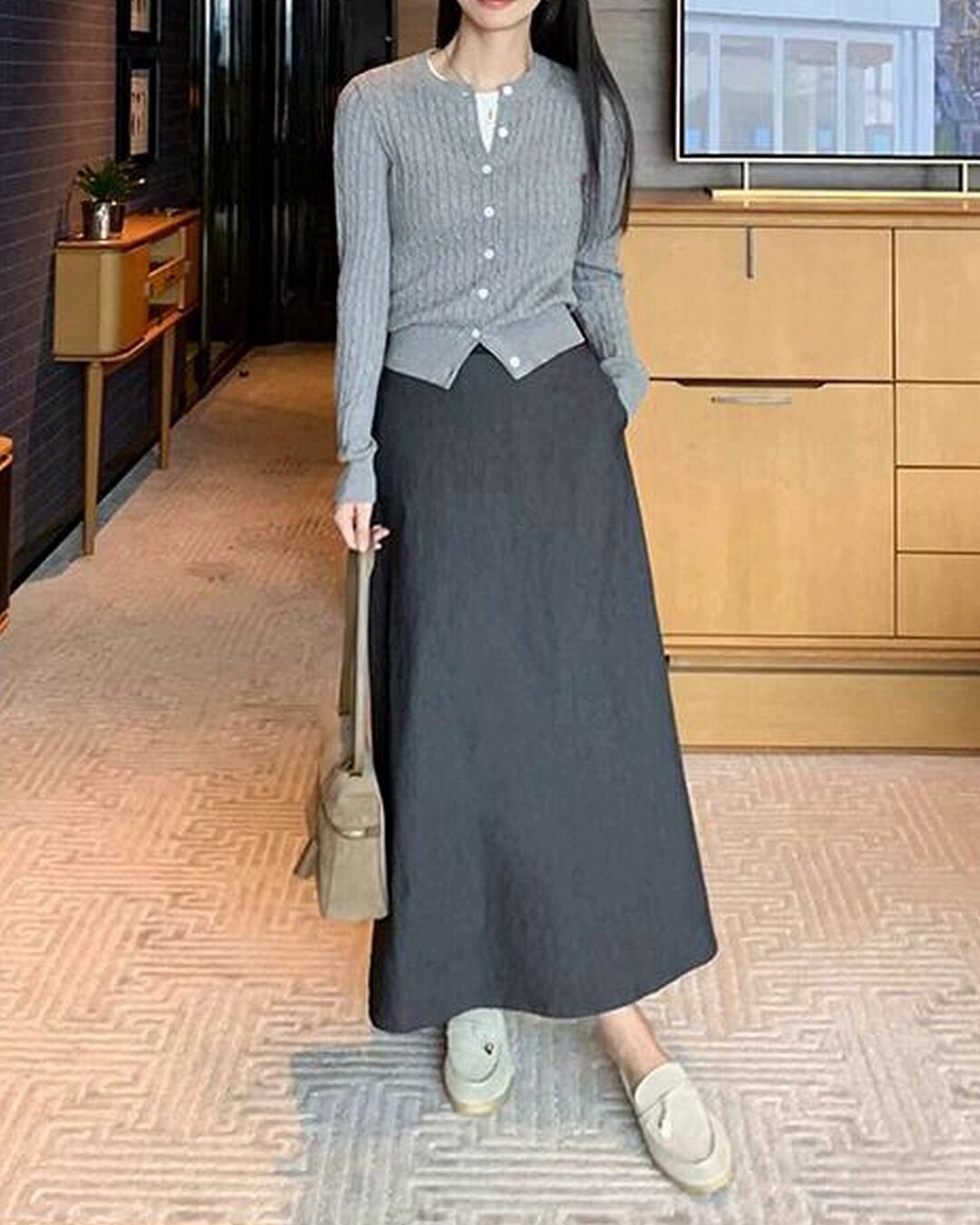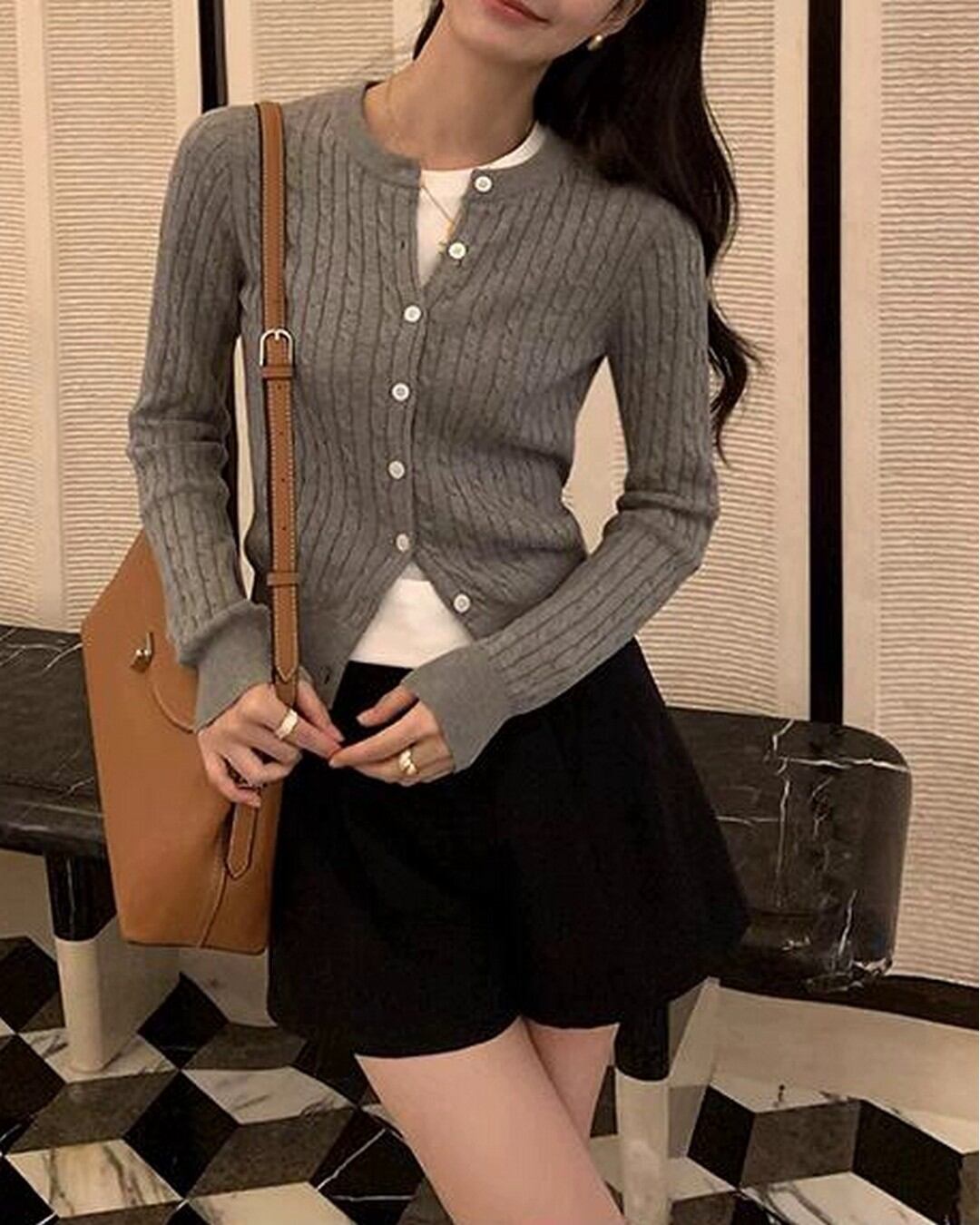 どんなスタイルにも合わせやすいカーディガンは、デイリーユースに最適です。 ラウンドネックデザインが優しい印象を与え、軽やかさを演出します。 シンプルなスタイルながら、女性らしさを引き立てるフィット感が特徴です。