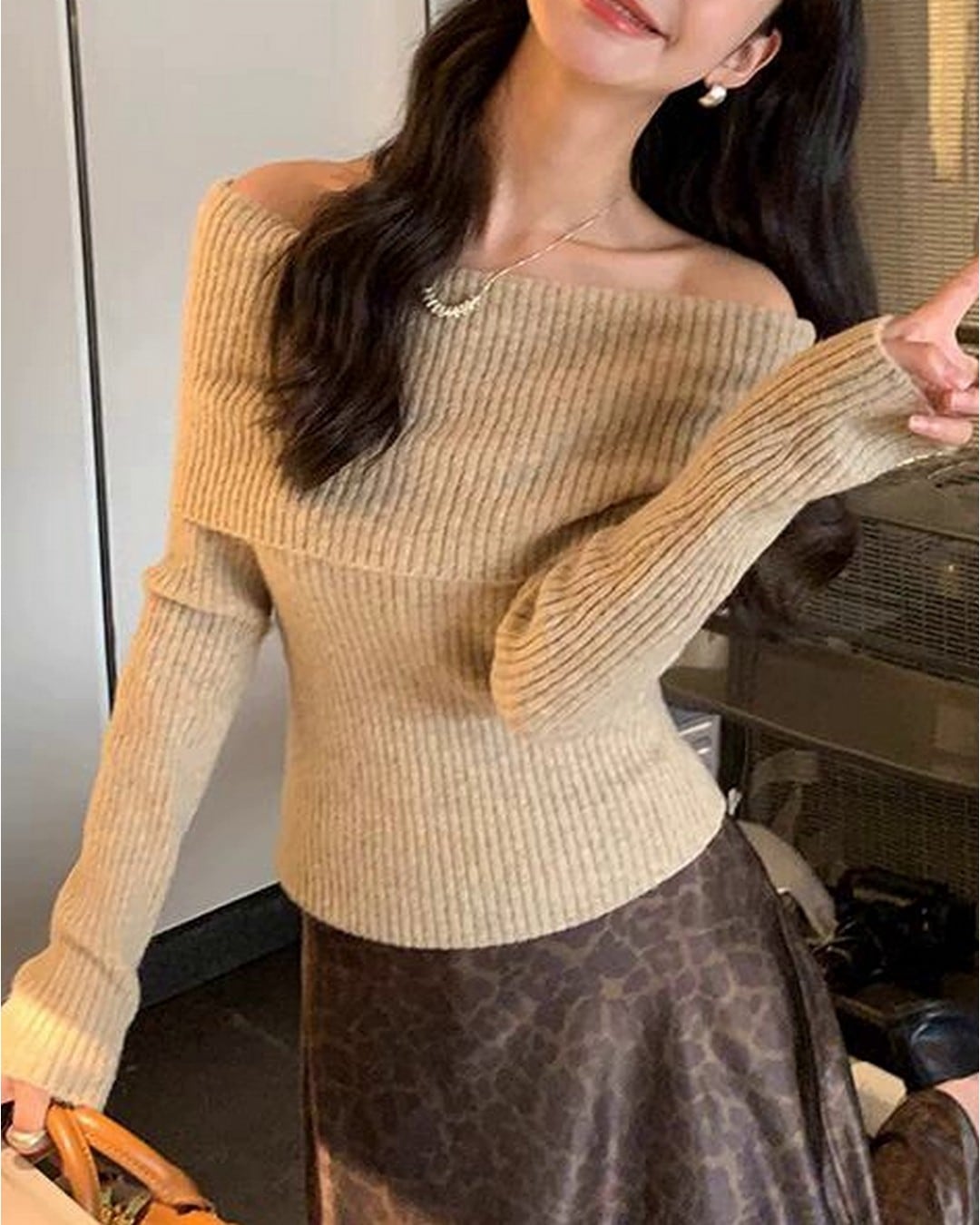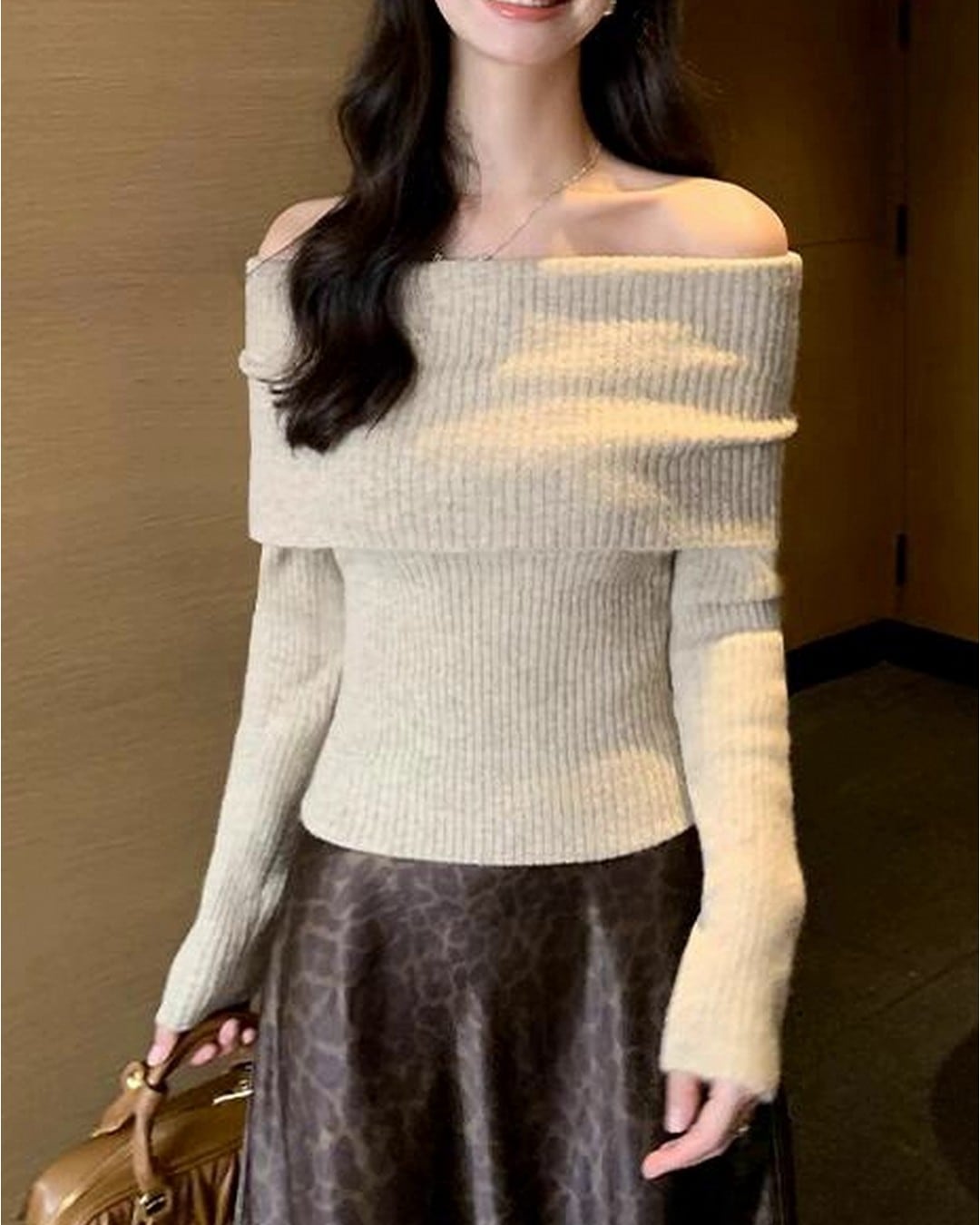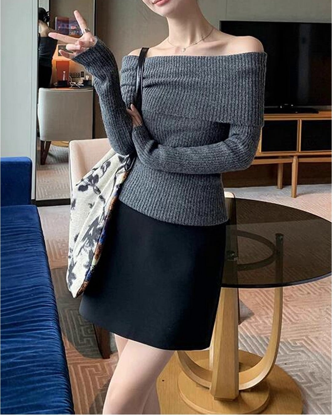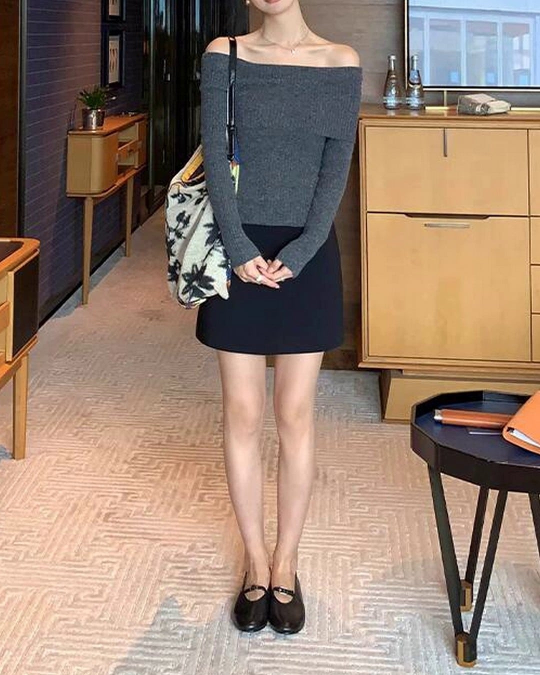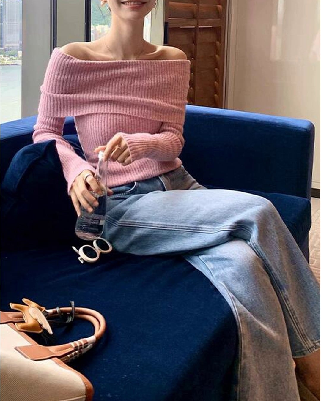 肩を華やかに見せるオフショルダーのデザインが特徴です。シンプルながらも女性らしさを引き立てる一着。デニムやスカートとの相性も抜群で、カジュアルからスチューディオスタイルまで幅広いコーディネートが楽しめます。