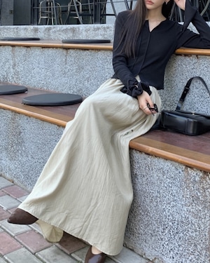 シンプルでありながらもカジュアルな印象を与えるデザインが特徴です。華やかなベルスリーブが手元を美しく演出し、リラックスしたフィット感で着心地も抜群です。スリットネックのデザインは首元をすっきりと見せ、さまざまなボトムスとも相性が良いので、幅広いスタイルでお楽しみいただけます。