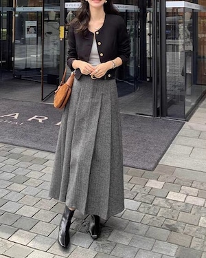 広がりのあるプリーツが、歩くたびに美しいシルエットを演出します。どんなトップスとも合わせやすく、カジュアルからフォーマルまで幅広いシーンで活躍すること間違いなしのスカートです。