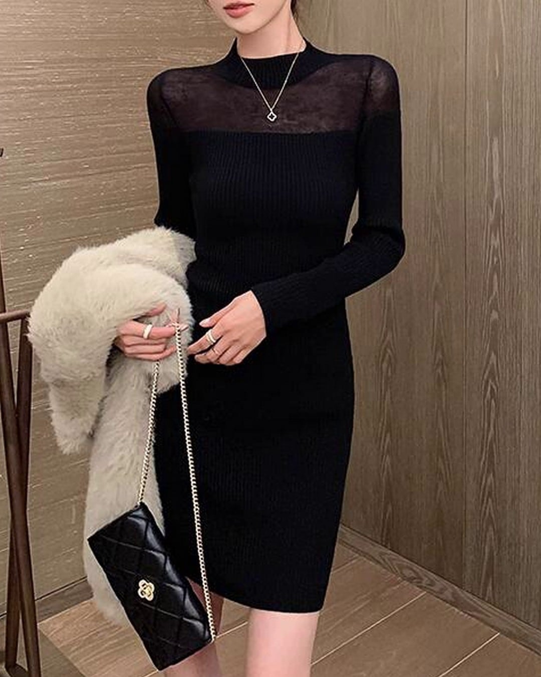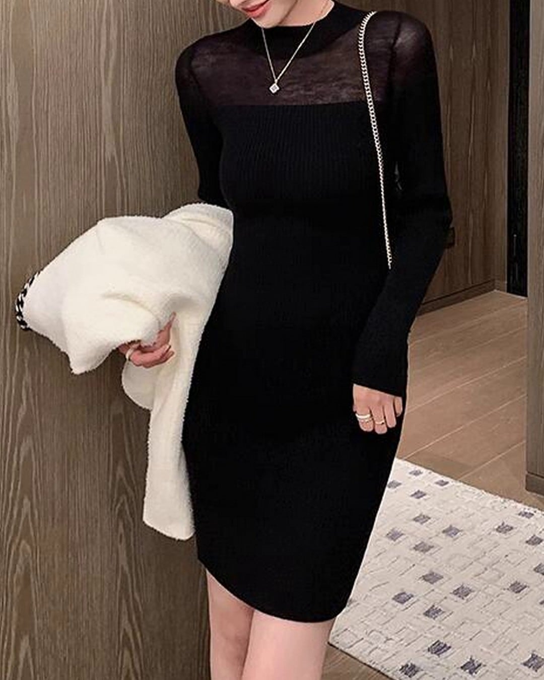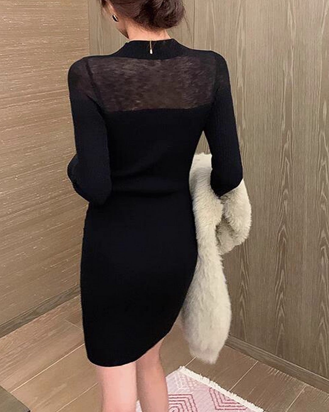 シースルー素材を使用したミニワンピースで、しなやかなシルエットとコーディネートの幅を広げる一着です。様々なシーンで活躍するこのワンピースは、トレンドを押さえたデザインが魅力を引き立てます。