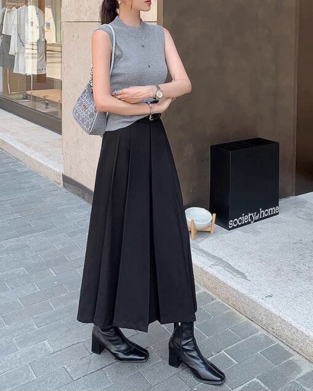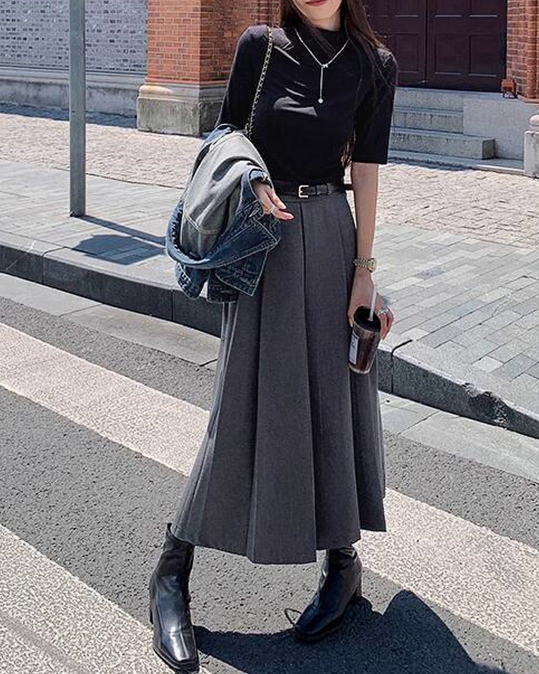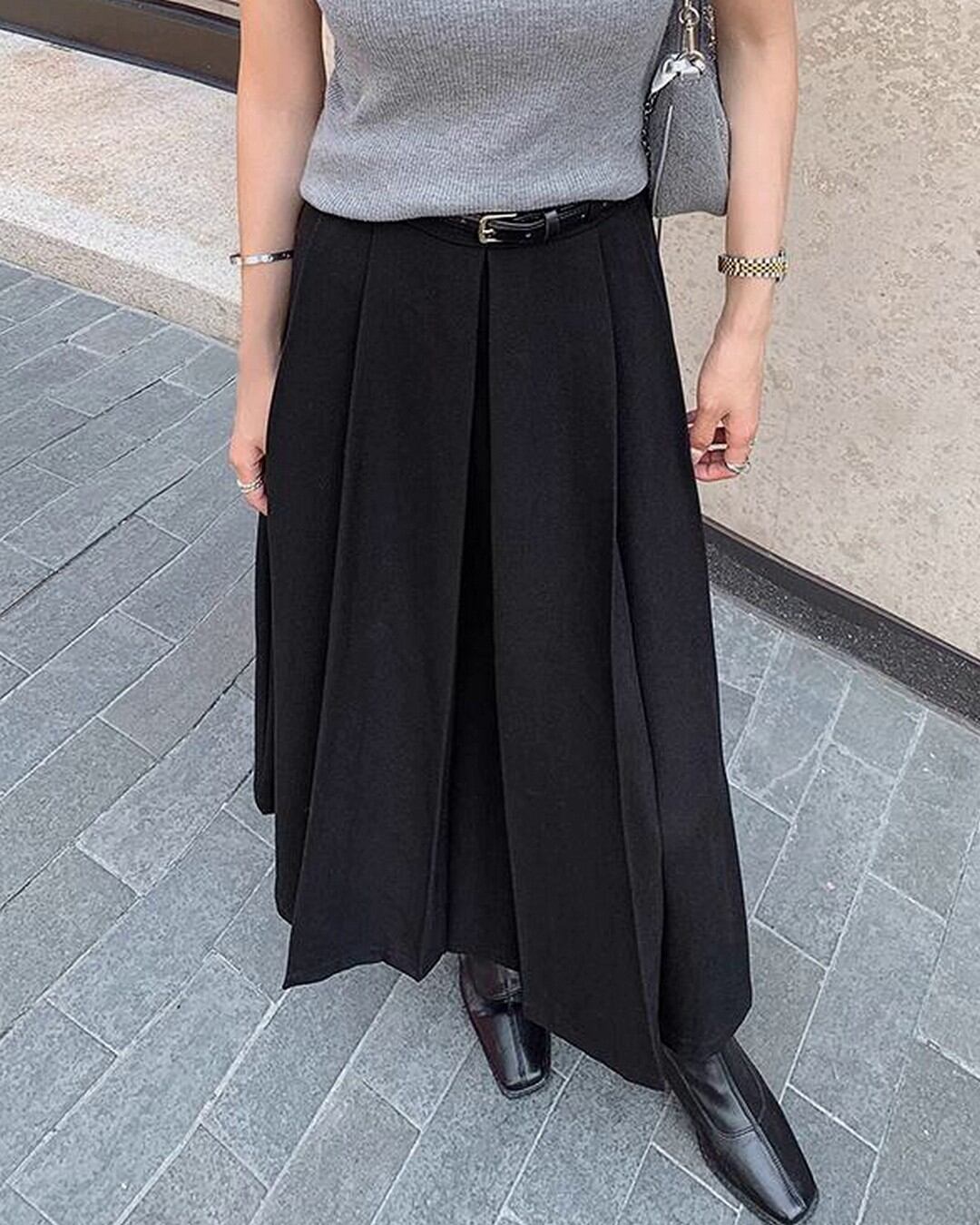 Aラインシルエットが美しいプリーツスカート。上品なデザインで、どんなトップスとも相性抜群。動くたびに揺れるプリーツが女性らしさを引き立て、デイリーユースから特別な日まで幅広く活躍します。