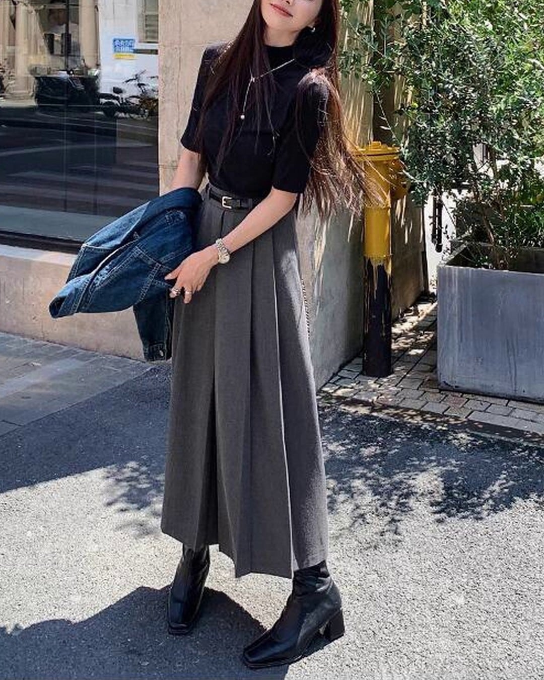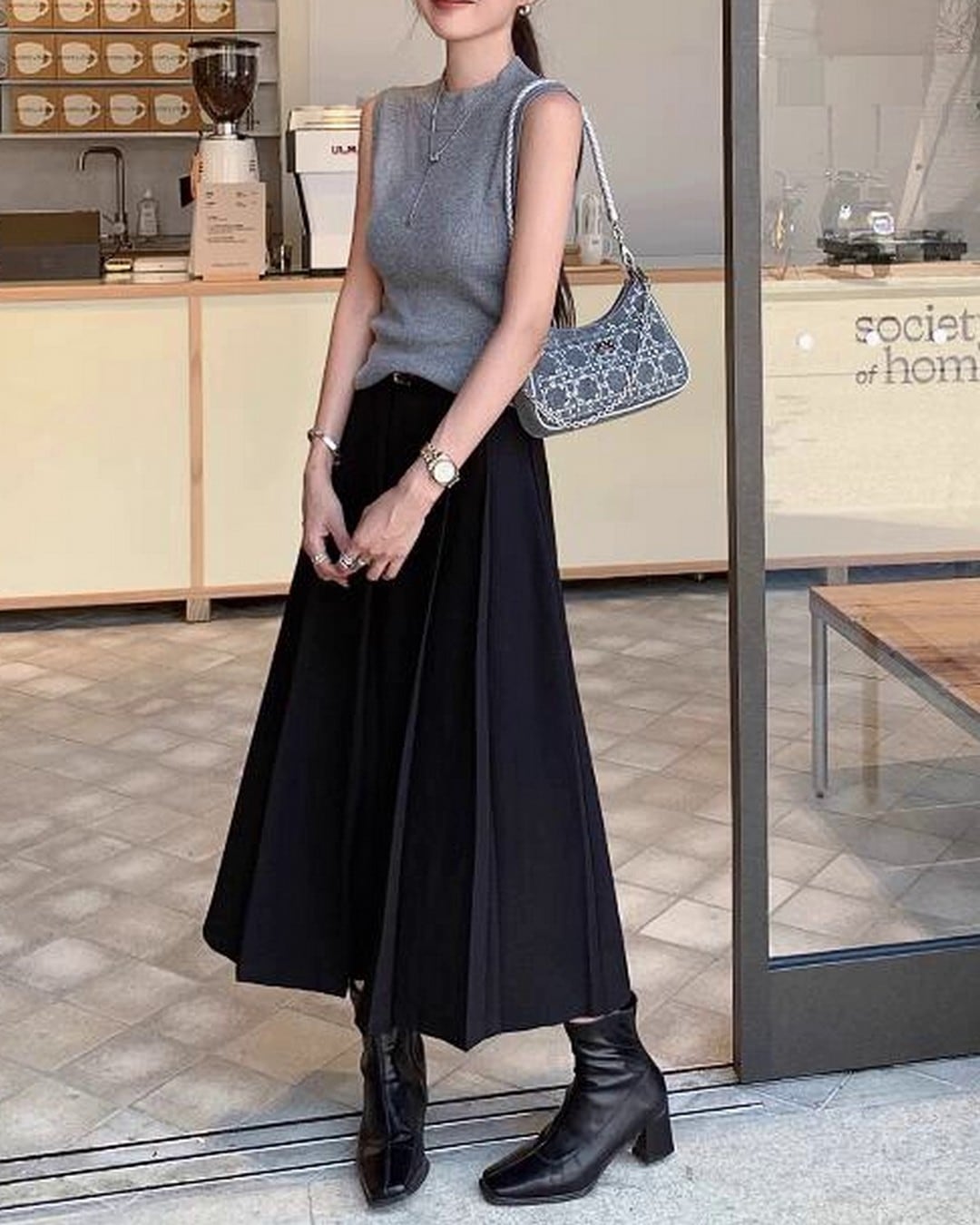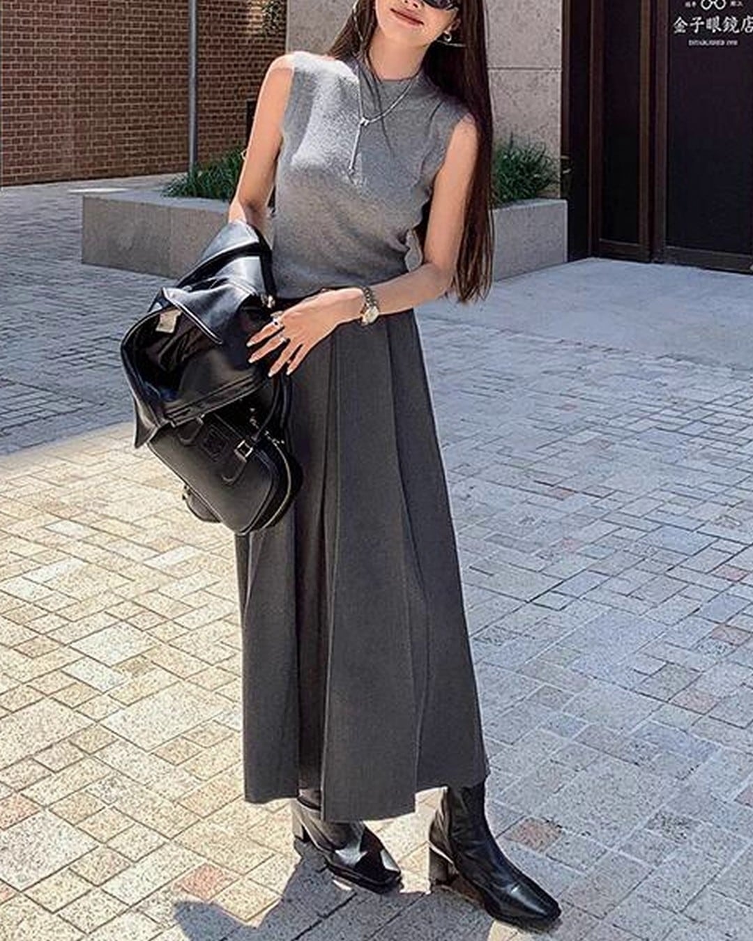 Aラインシルエットが美しいプリーツスカート。上品なデザインで、どんなトップスとも相性抜群。動くたびに揺れるプリーツが女性らしさを引き立て、デイリーユースから特別な日まで幅広く活躍します。