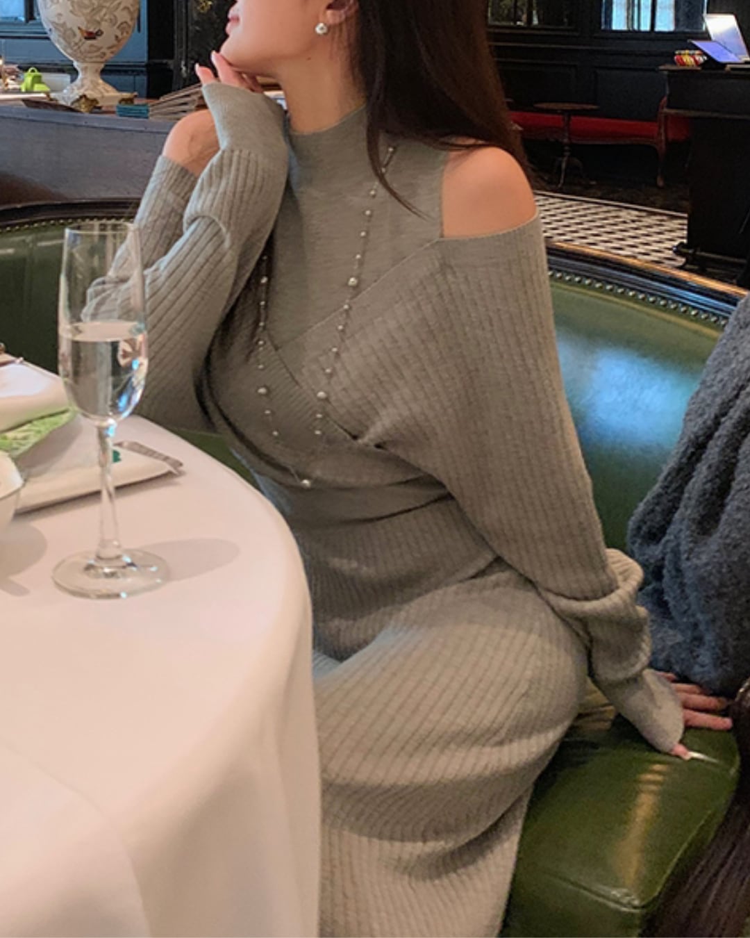 #ニットワンピース #ロングワンピース #ショルダーオープン #ssワンピース