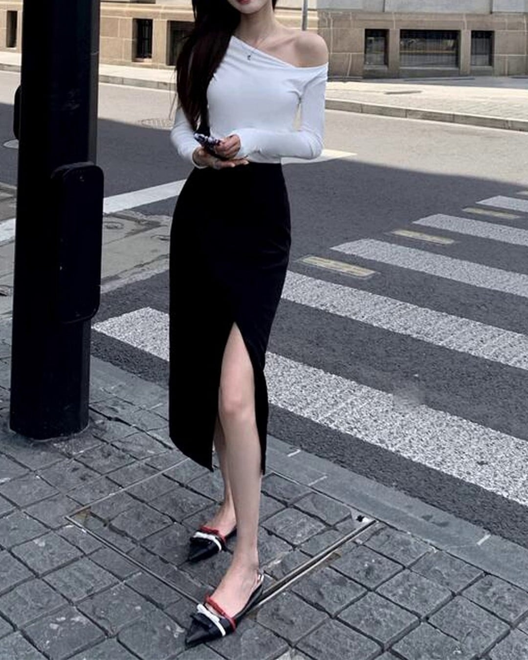 ウエストを高く引き上げることでスタイルアップを実現します。スリットが入ったデザインは、動きやすさとともに、その美脚効果を引き立てます。カジュアルなコーディネートからフォーマルな場面まで幅広く使用できるため、どんなシーンでも活躍すること間違いなしです。デートやお出かけ、オフィスカジュアルにもおすすめです。