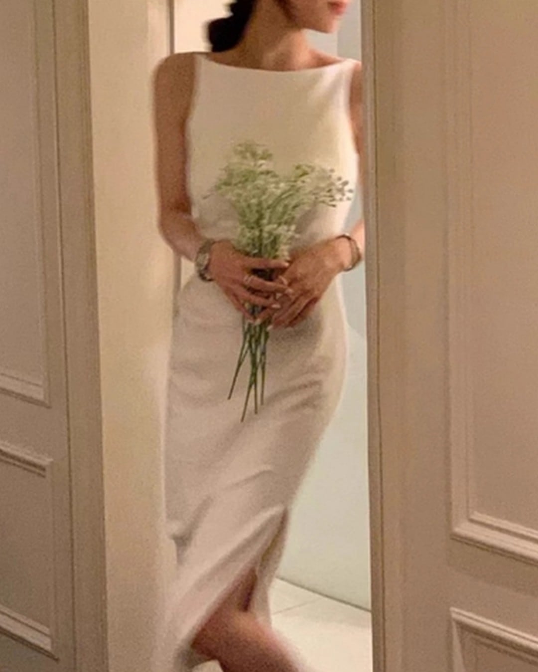 上品なボートネックデザインが特徴のボートネックスリムワンピース。シンプルながらもエレガントな雰囲気を演出し、さまざまなシーンでご着用いただけます。