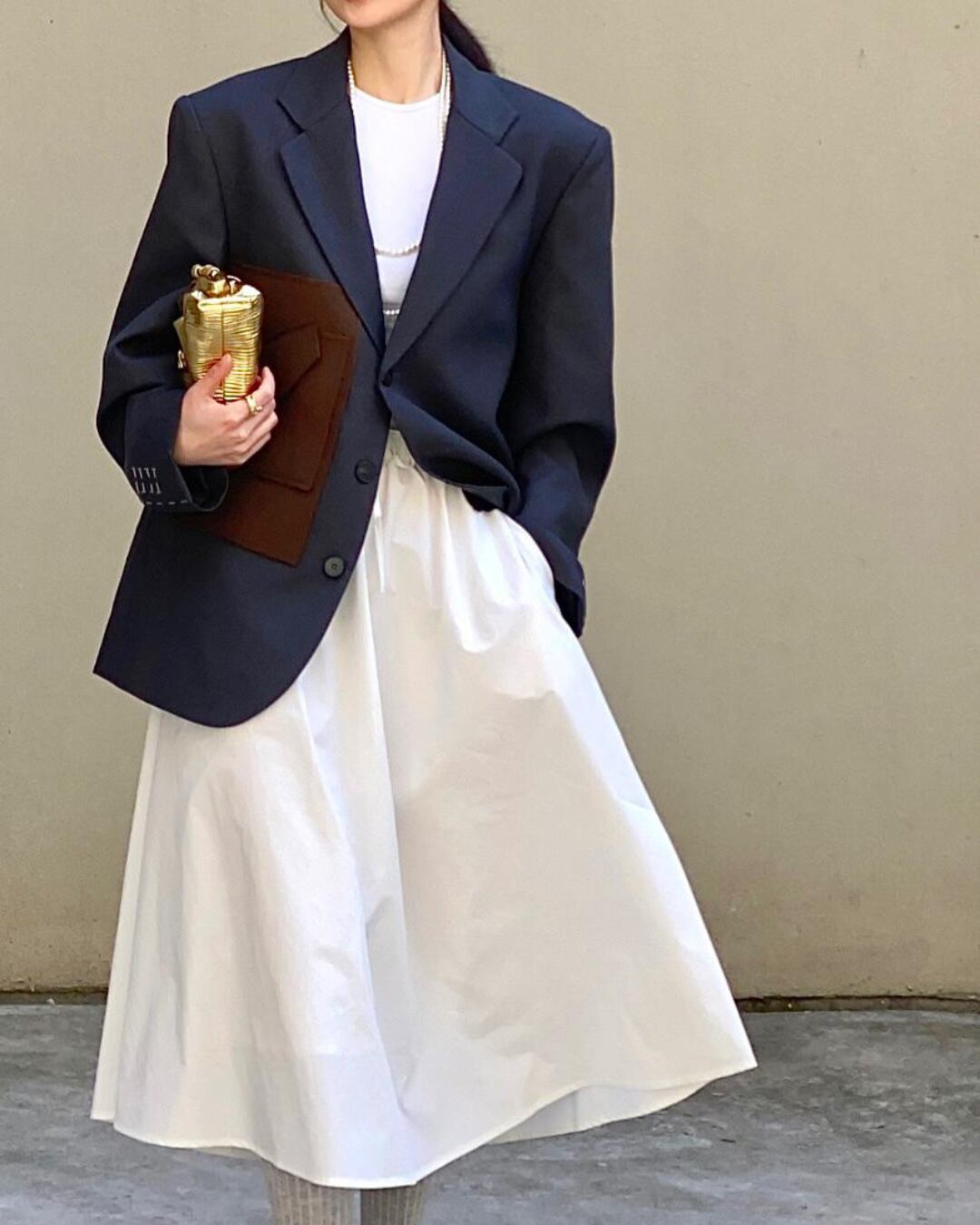 豊かなボリューム感が魅力のミディ丈スカート。流れるようなシルエットが女性らしさを引き立て、カジュアルからエレガントなシーンまで幅広く対応可能です。軽やかな素材感は、動くたびに美しいラインを描き、日常のコーディネートに華やかさをプラスしてくれます。